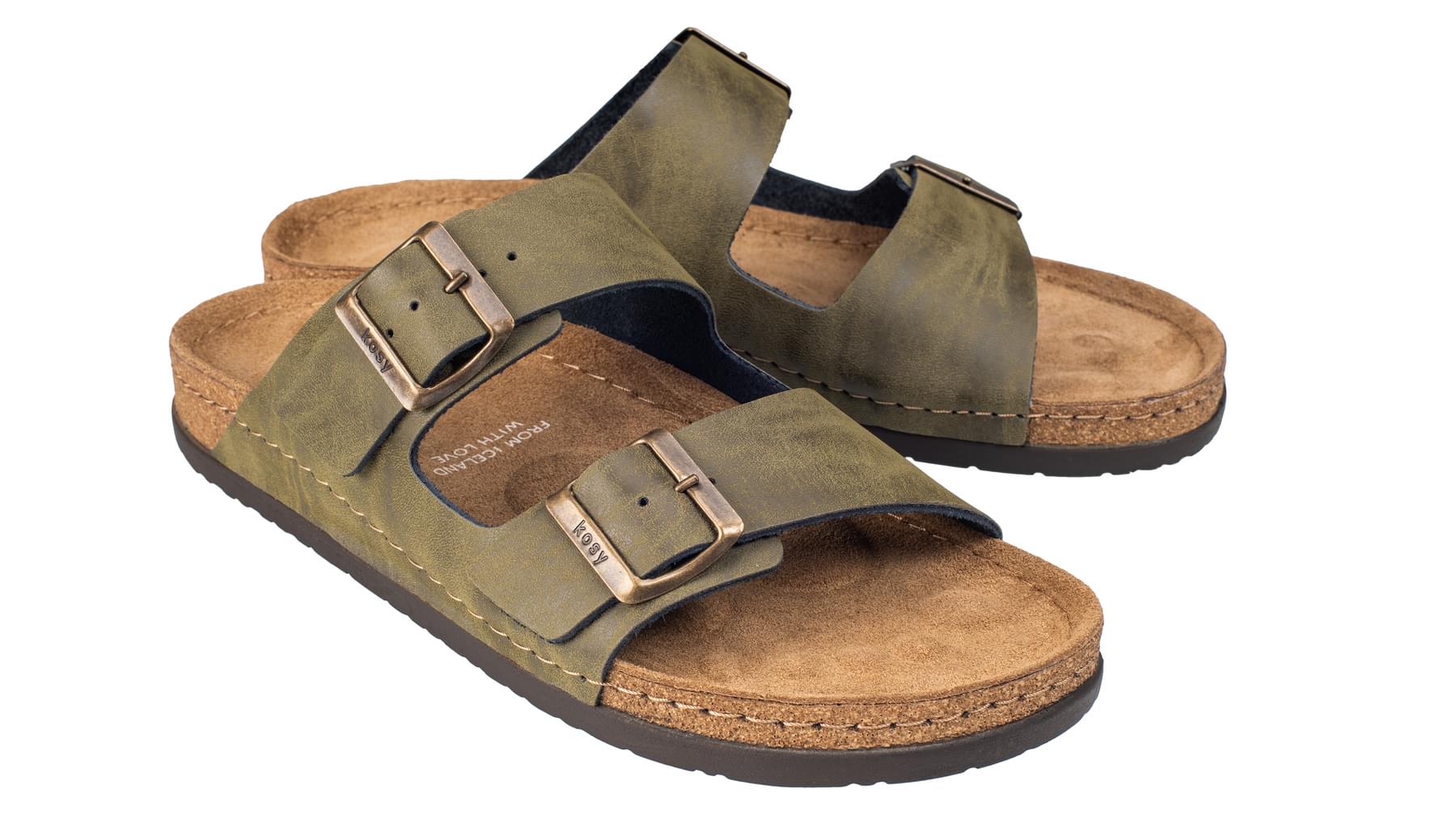 Forsíða / Allar vörur / Mjúkvörur / Inniskór / Ylur – Inniskór (Ólífugrænt leður)